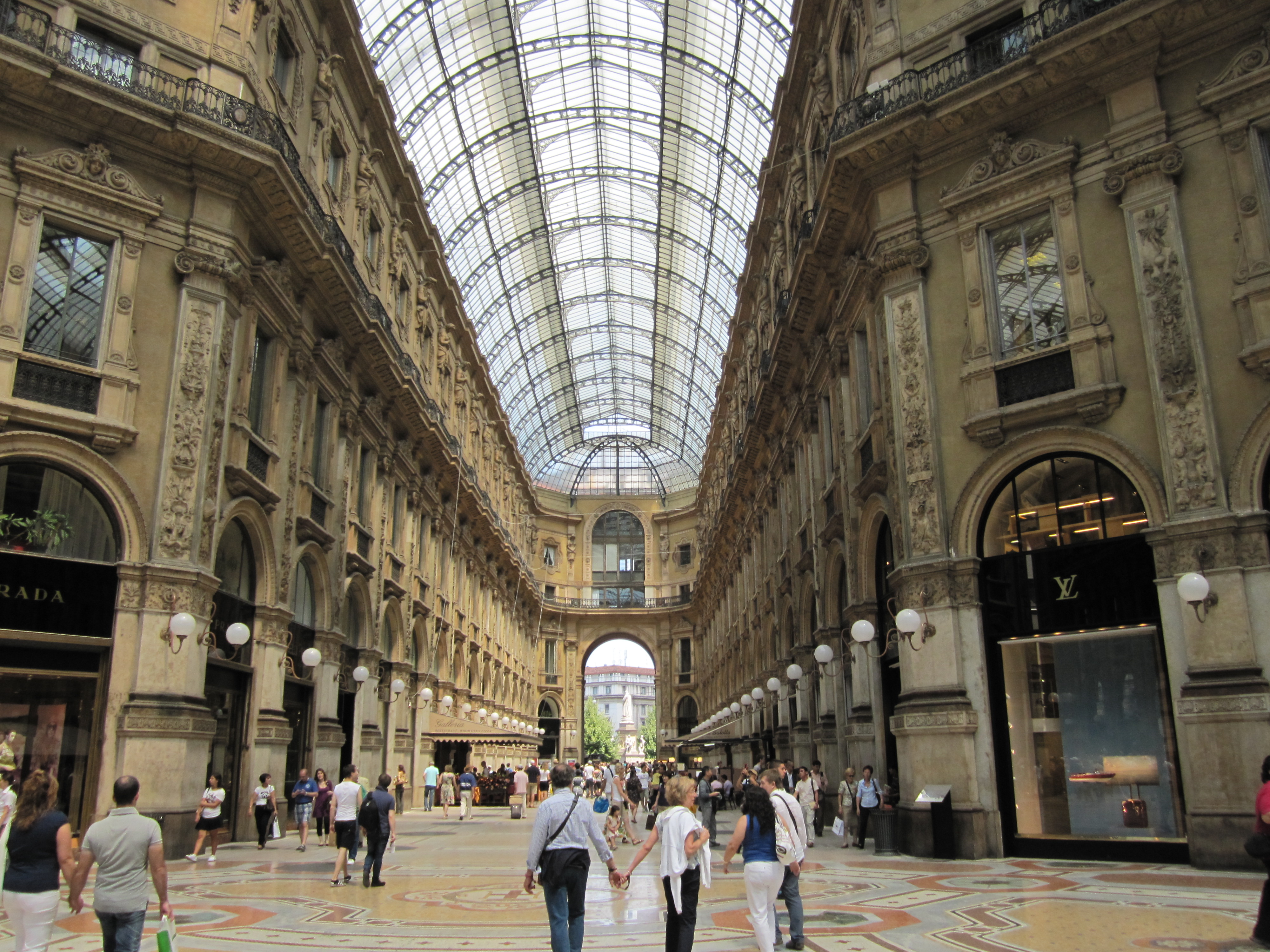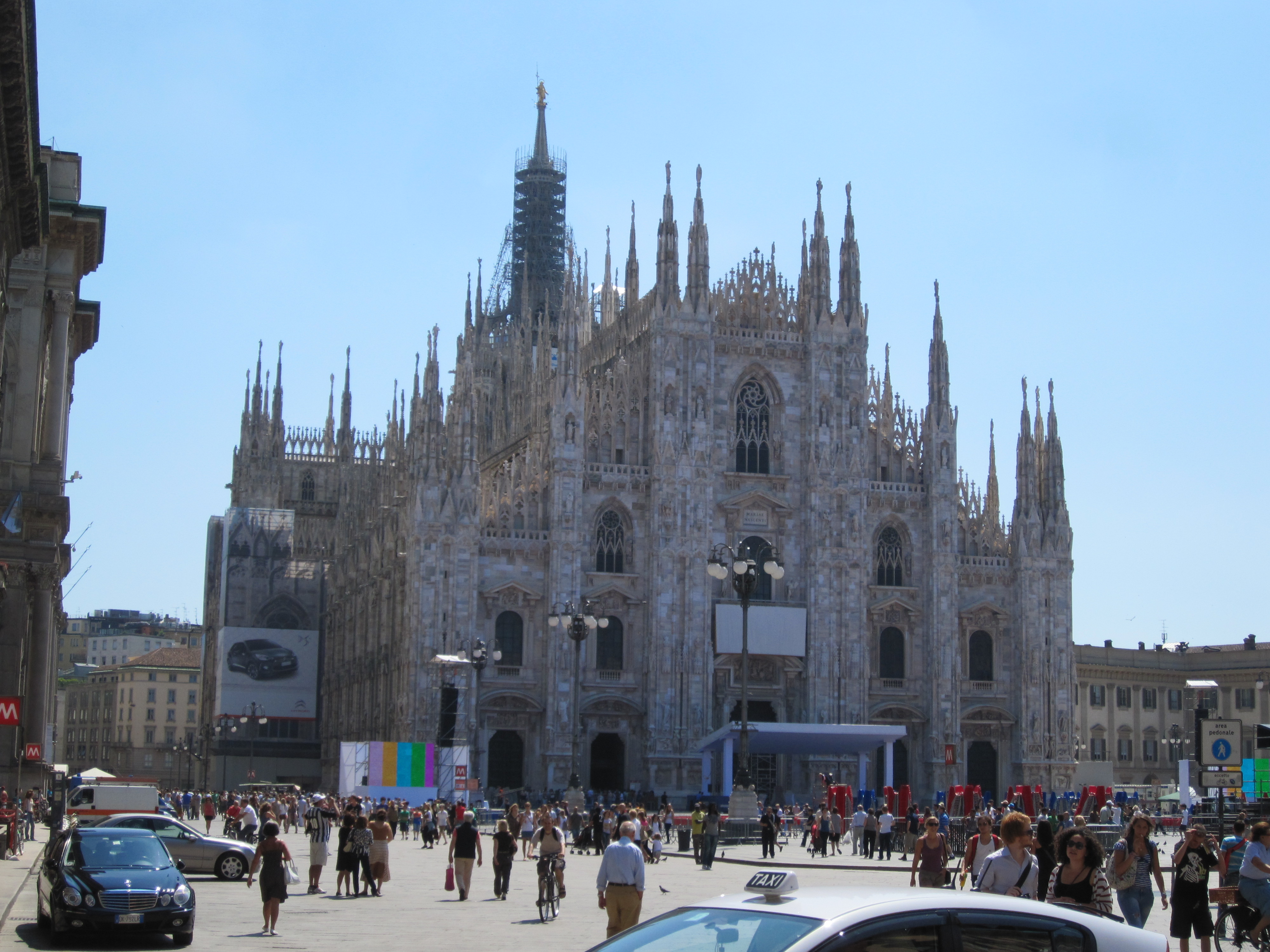 Onze eerste doel was het bezichtigen van de Dom (Duomo) van Milaan. De op drie na grootste kerk te wereld (Sint pieter, Dom van Sevilla, en één of andere nieuwe kerk in Ivoorkust zijn groter). Zie hieronder een foto. Hier hebben we binnen nog een audio guide tour gedaan, maar dat had ook prima in een folder gekund ofzo. De audio tour maakte sommige dingen alleen maar lastig, Hierna zijn we wat verder gelopen op zoek naar een plekje om te eten. Deze waren er zat, echter koste een colaatje al gauw 6 euro voor 0,2l of 10 voor 0,5l. Na wat zoeken kwamen we een iets goedkopere tegen, waar we samen 2 broodjes en 1 glas cola hebben opgegeten voor niet minder dan 22 euro.