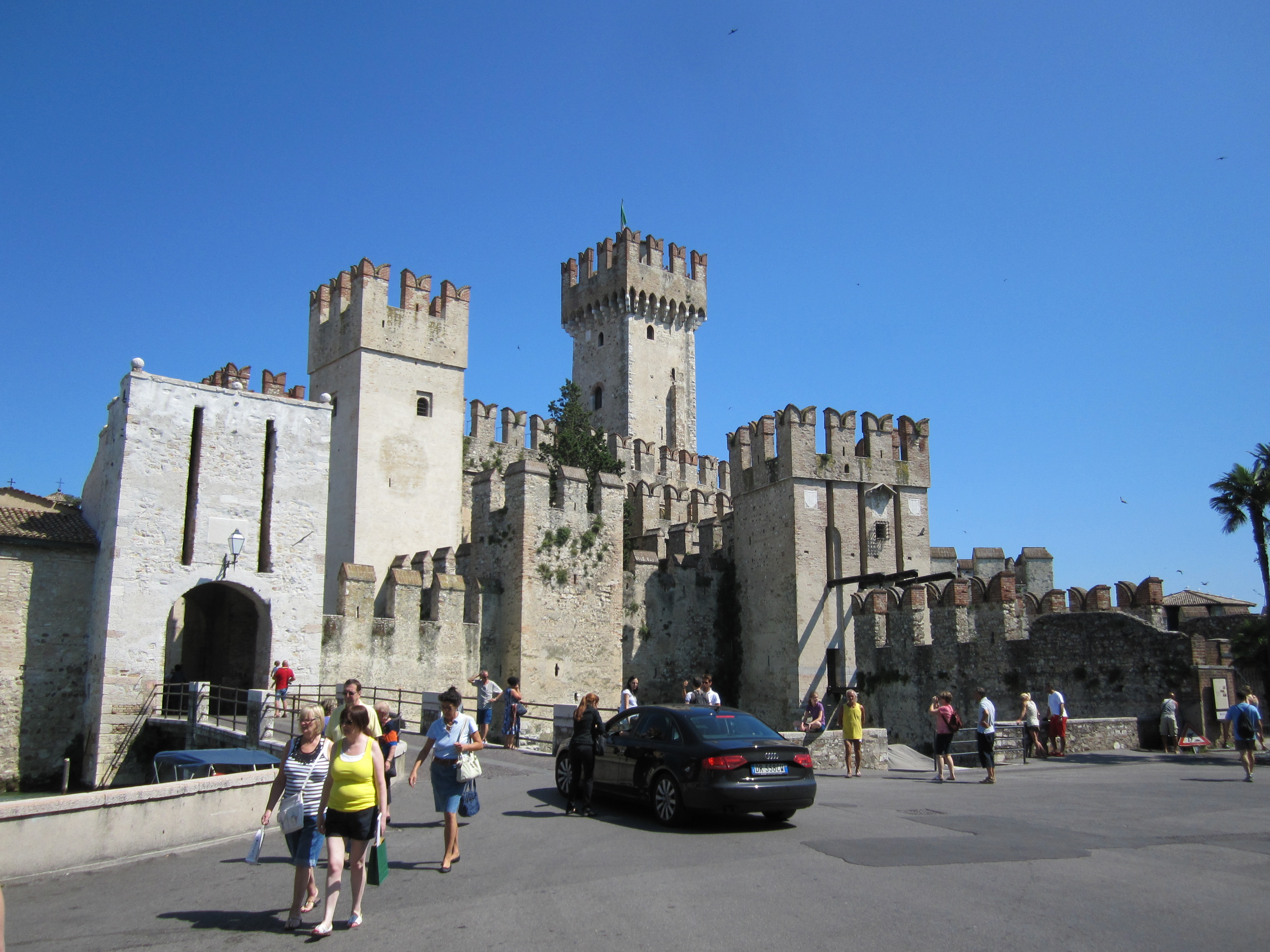 Vandaag een relax-dagje, dus eerst lekker uitgeslapen. Na het ontbijt hebben we Sirmione bezocht, dat naast Desenzano ligt. Hier bleek meer te bekijken dan we dachten: een oud fort en een pittoresque oude binnenstad met leuke steegjes. We waren niet de enigen die er zo over dachten, het was er namelijk beredruk. Daarnaast was het ook nog eens bloedjeheet zodat er ook veel mensen naar het water toe kwamen. De meesten niet echt om te zwemmen, maar vooral om te bakken (een ander woord is er niet voor met de brandende zon van vandaag). En daarvoor hebben Italianen geen zacht zandstrand nodig, het handdoekje gaat gewoon over de stenen. Jammer genoeg hadden we wat beperkt de tijd vanwege de parkeertijd, dus nadat we een klein uurtje in het centrum waren geweest moesten we terug richting de auto.