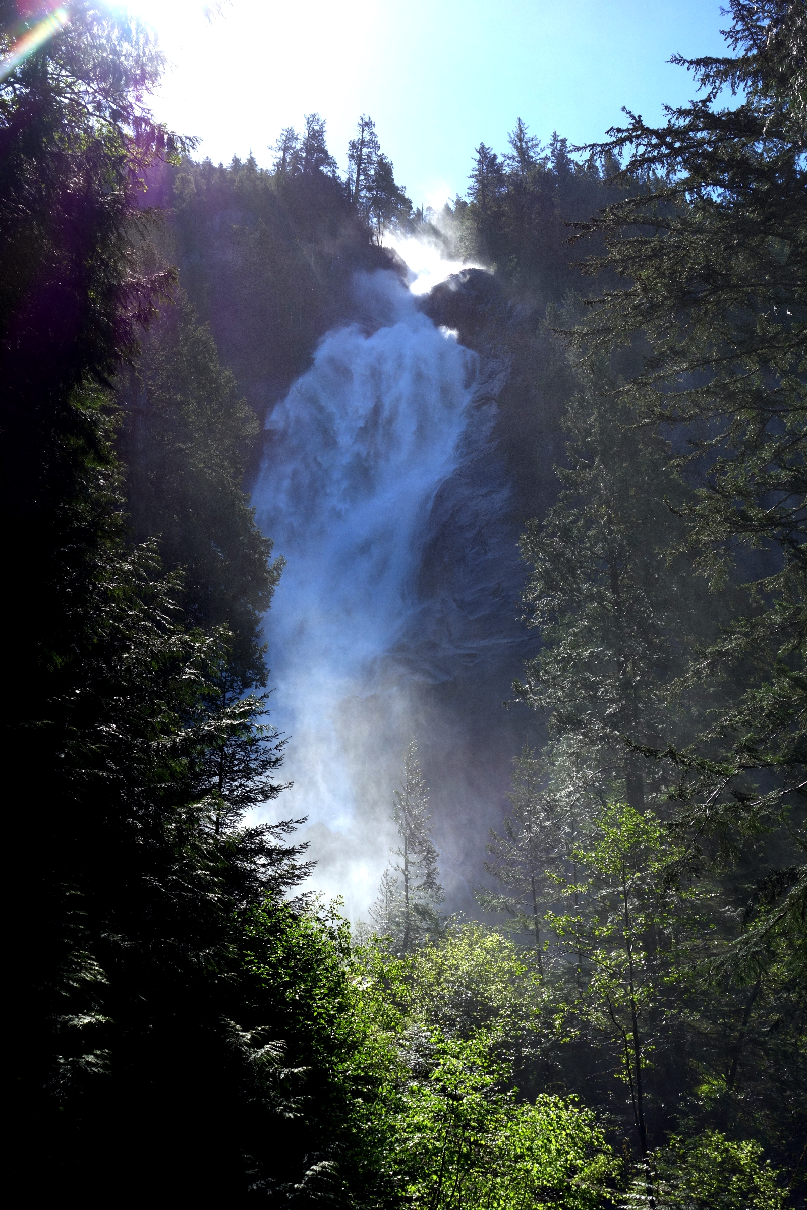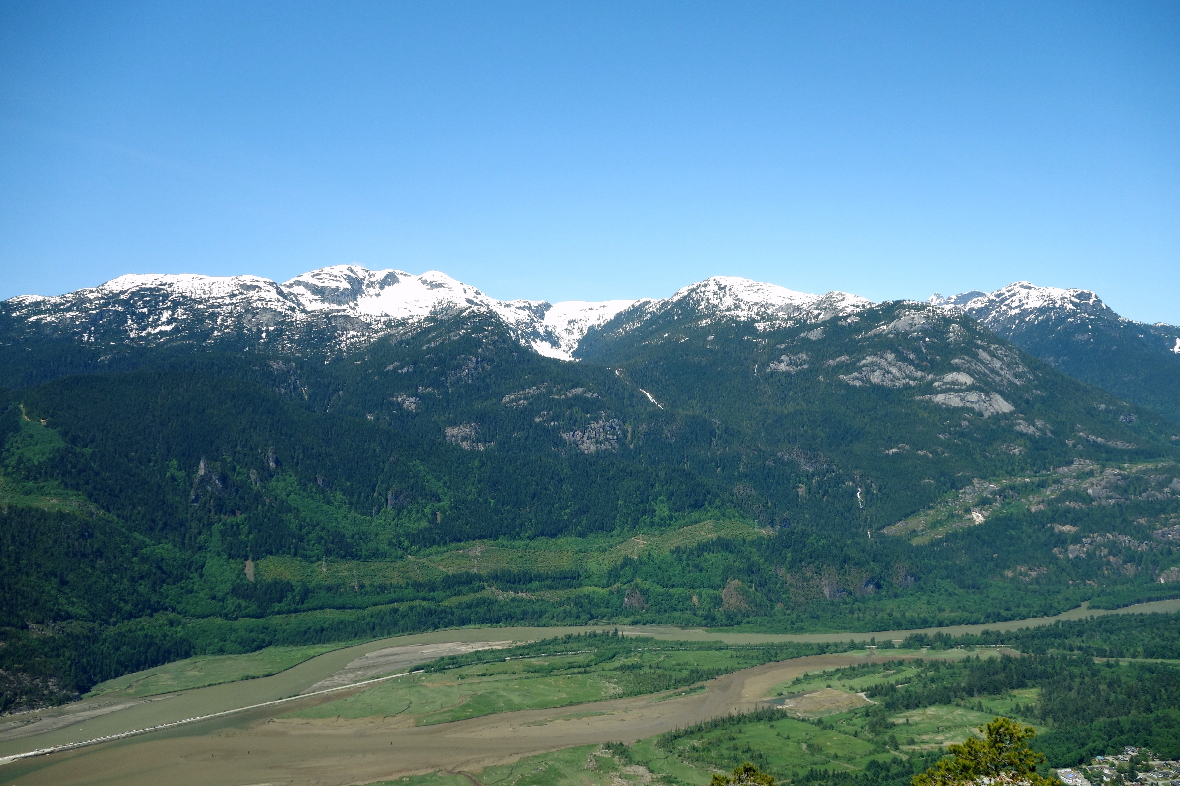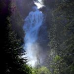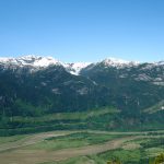 Argh, spierpijn! 700 m aan trappen op en neer zijn we blijkbaar toch niet helemaal gewend… Vandaag vooral een autotoer-dagje: een mooie route door de bergen en heuvels van Whistler naar Kamloops, die de Sea to Sky Highway wordt genoemd. Net buiten Whistler maken we een korte stop voor een kleine wandeling naar de Nairn Falls, waar het water met veel geweld naar beneden komt. Ook bij de Ioffre lakes doen we een kort rondje naar het eerste van drie meren en genieten we op een bankje van het uitzicht over het meer. Dit meer ligt iets op hoogte (1200 m) en hier ligt zelfs nog sneeuw. Daarna weer de auto in waarbij we erg blij zijn met de airco vandaag want de temperatuur loopt op naar 32 graden, klinkt inderdaad wat tegenstrijdig met de hiervoor genoemde sneeuw.