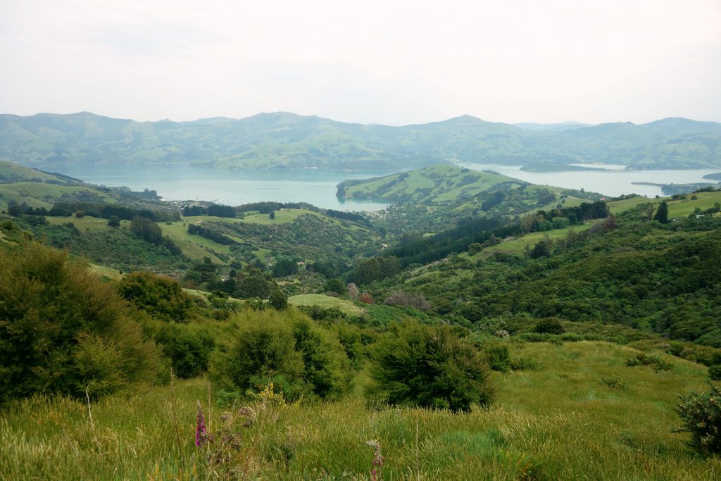Vandaag rijden we via de toeristische route terug naar Christchurch. Die toeristische route is vooral de eerste helft, waarbij we nog één keer kunnen uitkijken over de baai bij Akaroa. Nog één keer slingerend een berg op en daarna natuurlijk ook weer af.