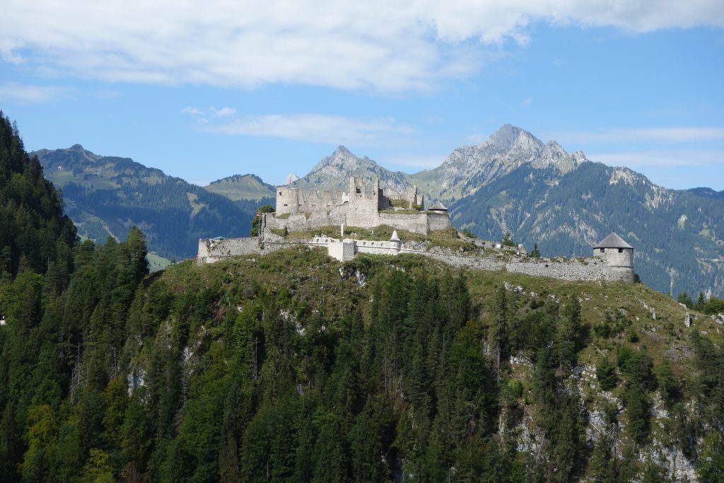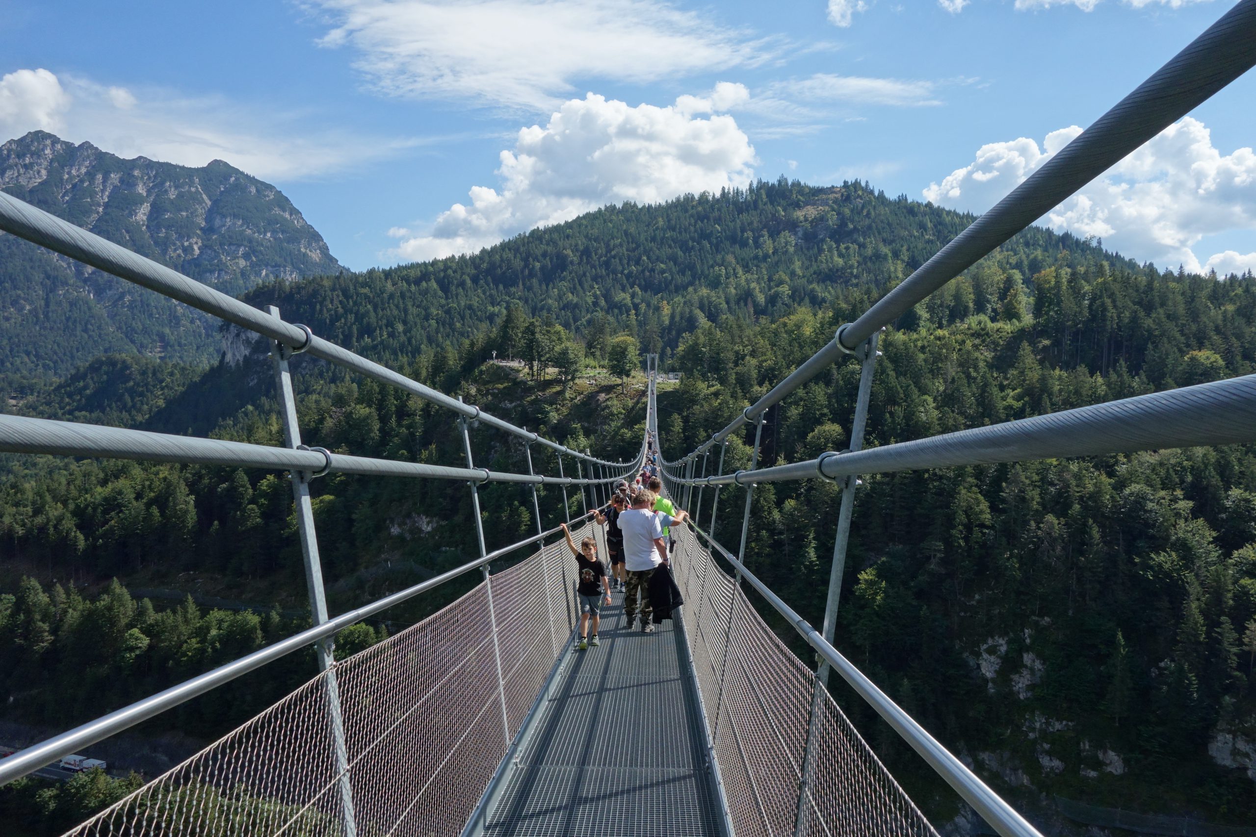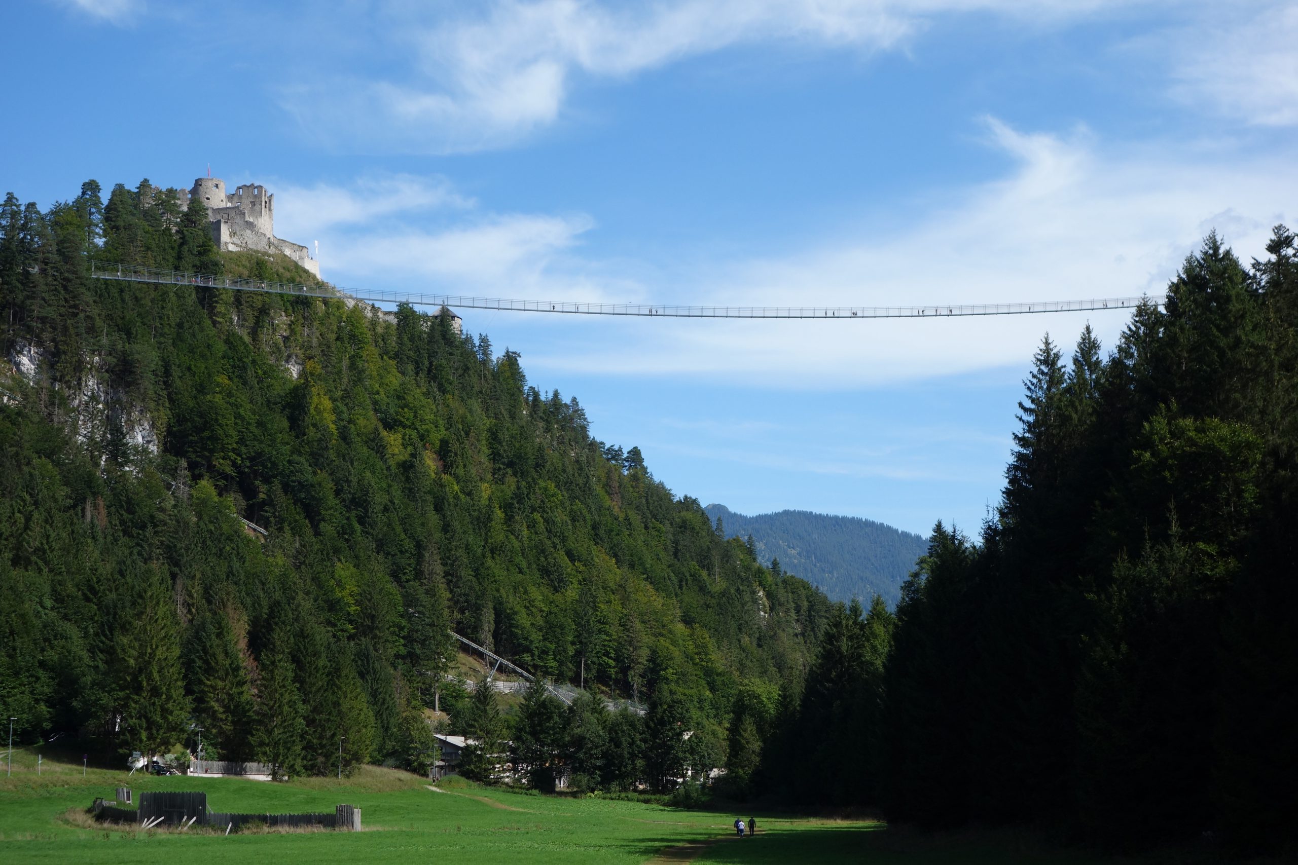 Opnieuw een prachtige dag om buiten te zijn. We rijden vandaag een klein stukje Oostenrijk in om twee oude forten te bekijken en nog leuker: om via een hangbrug over het dal (110 m hoog, 405 m lang) van het ene fort bij het andere fort te komen. Onderweg gaan we even langs de supermarkt voor een paar verse broodjes voor de lunch.