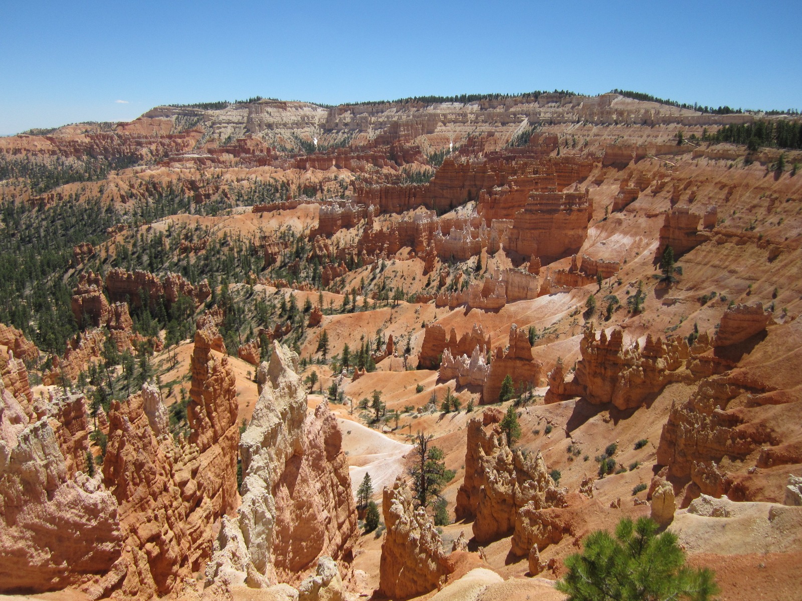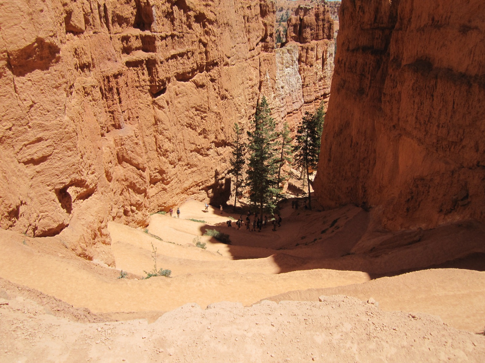 Bryce canyon is minder diep en groot dan de grand canyon, maar dit zorgt er wel voor dat je een hike naar de bodem kan doen, om vandaar de wanden te bekijken. Dit hebben we dan ook gedaan, een intermediate hike van 2 tot 3 uur bleek in 1 uur en een kwartier gepiept. Daarna wat uitkijkpunten bezocht (hoogste punte 2700 meter), terug gereden naar het hotel voor het avond eten, en daarna weer terug het park in voor de zonsondergang. Deze was een stuk minder spectaculair dan in de gand canyon.