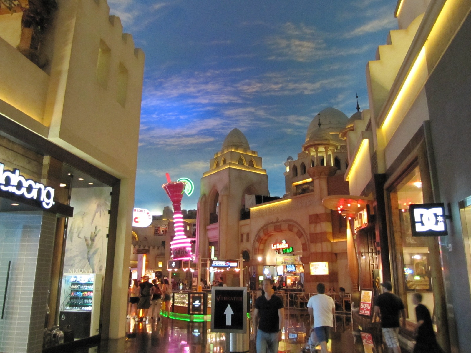 Vervolgens door naar de Mirrage. Daarna naar de overkant voor de Ventian, compleet met gondels die door zingende roeiers worden rondgepeddeld op een rivier die zowel binnen als het buiten het gebouw stroomt. Hier en daar wat gegokt, black jack en op de slot-machines. Per saldo hebben we uiteindelijk toch verloren, we konden de winning mood van de voorgaande dag niet doorzetten.