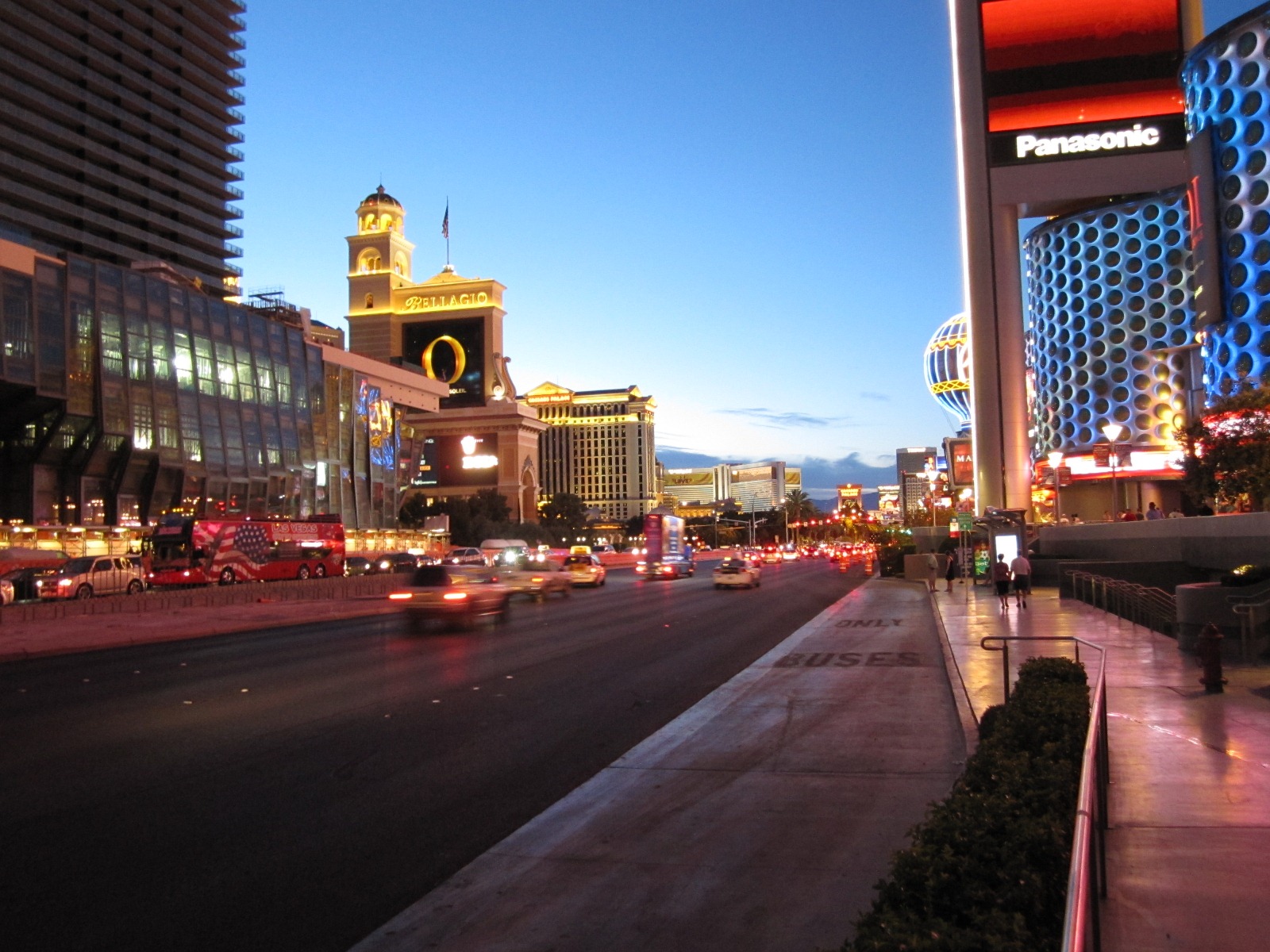 De weg naar Las Vegas was verder redelijk recht toe recht aan. Vanuit Utah weer een klein stukje door Arizona om in Nevada uit te komen. Vlak voor de stad nog even ergens gelunched en een hoognodige plaspauze. Toen naar het vliegveld gereden om de auto om te ruilen (een Hyundai Elantra, toch een stapje terug in vergelijking met de Dodge Avenger).