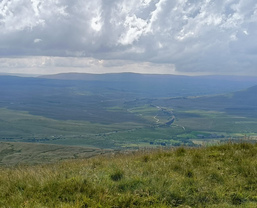 Vandaag wederom een mooie dag om te wandelen. Na het ontbijt stappen we in de auto voor het korte ritje naar het startpunt in het naastgelegen dorp Rydal. De route van vandaag is ongeveer in de vorm van een hoefijzer, waarbij we over verschillende piekjes gaan. Het eerste deel van de route stijgen we het snelst. Daarna vlakt het iets af en komen we over vier pieken: Low Pike, High Pike, Dove Crag en Hart Crag waarbij we elke keer iets hoger uitkomen. Regelmatig maken we korte stop om ons heen te kijken. Het hoogste punt van vandaag is Fairfield, wat een wat groter vlak gedeelte is. Jammer genoeg zitten we net op dat moment midden in de laag hangende wolken waardoor we op dit punt geen uitzicht hebben. Daarnaast waait er ook een stevige wind. Als we iets verder lopen en een beetje dalen is de wind wat minder en zitten we net onder de wolken waardoor het uitzicht een stuk beter is. Aan verschillende kanten kunnen we wegkijken het dal in. Ook in de tweede helft hebben we nog een aantal, nu steeds lager wordende, pieken: Great Rigg, Heron Pike en Nab Scar. Uiteraard komen we ook nu weer hier en daar een paar schapen tegen. Je ziet hier niet veel helemaal witte schapen. Wat meer voorkomt is wit met een zwarte kop (met hoorns) en zwarte poten of juist andersom: zwart (meer grijs eigenlijk) met een witte kop en witte poten. Na Nab Scar dalen we snel en dat beginnen we na 1000 hoogtemeters en ca 14 km in de benen toch wel een beetje te voelen, gelukkig dan nog maar 2 km te gaan. We waren rond twee uur weer terug bij de auto. De route was op de heen- en de terugweg op de meeste plekken wel duidelijk te volgen. Soms een grindachtig pad en hier en daar door het gras, maar vooral ook veel grotere stenen (soms een beetje aangelegd als een soort trap) en rotsen.